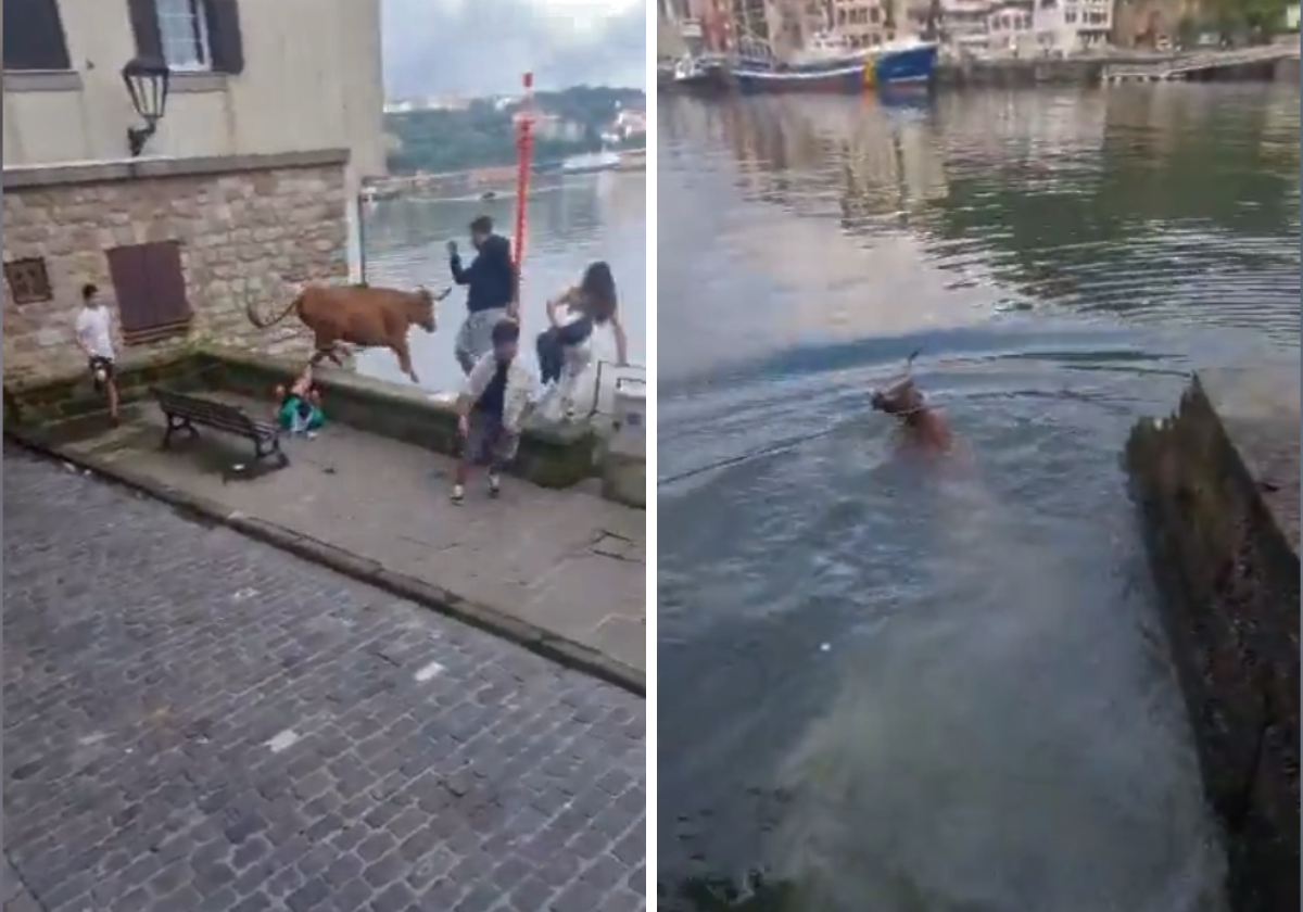 En 2014 ya ocurrió un suceso de este tipo en Pasajes también durante las fiestas. En aquella ocasión, una vaquilla se desvió del recorrido y acabó precipitandose en el agua.