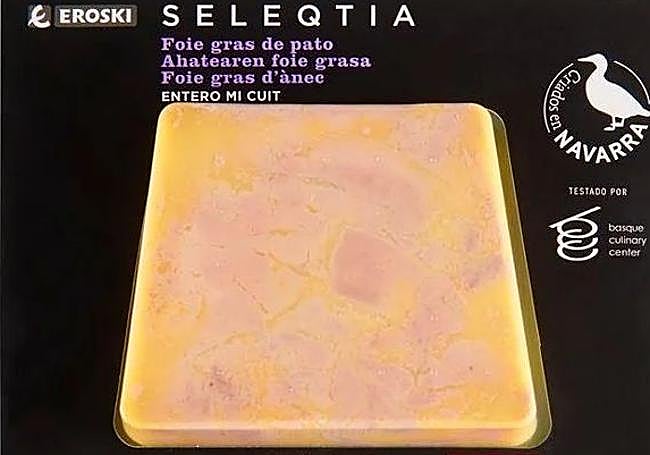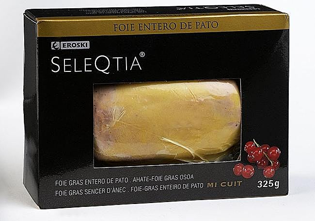Para completar la lista de los aficionados a los entrantes, está el foie entier micuit de la gama Seleqtia, que se comercializa en Eroski por 9,95 euros el paquete de 80 gramos.