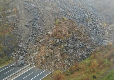 Un brutal desprendimiento corta la autopista entre Asturias y León