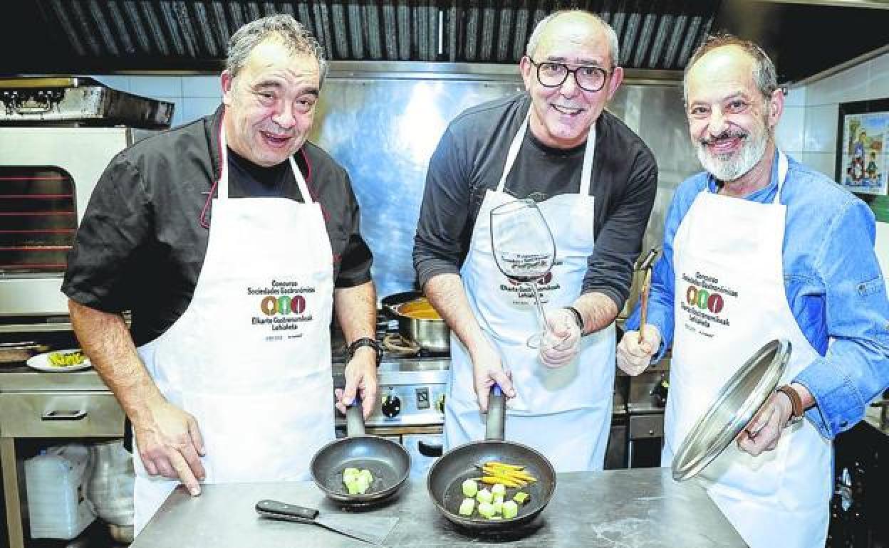 «Las sociedades gastronómicas reflejan la cocina popular, pero evolucionada. Y hacen gala del respeto por el producto local», alabó Eduardo Aguinaco, diputado de Agricultura. Para muestra el plato de alubias, algo tan 'babazorro', que mimaron con cariño. «Hicimos dos pruebas y esta era la que mejor respetaba los sabores», confesaron estos veteranos, quienes confirman eso de que la experiencia es un grado. «Antes nos comíamos mucho la cabeza, pero ahora nos confiamos en nuestra intuición hasta el final».