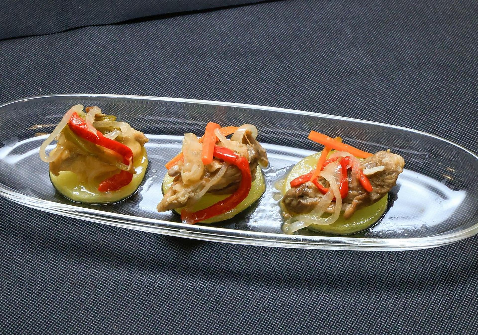 - Sobre este pollo se coloca una guarnición de las verduras escabechadas.
