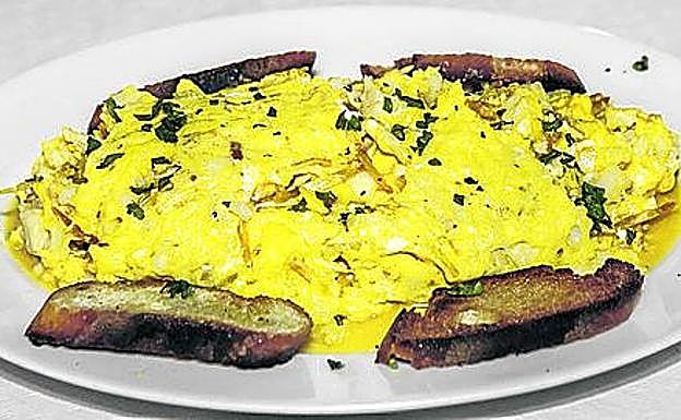 Elaboración: Rehogar la cebolla y el ajo. Preparar las patatas tipo paja. Pasar los trozos de bacalao por la sarten con AOVE. Hacer las patatas pajas hasta que queden crujientes. Mezclar el bacalao con los huevos. Añadir las patatas paja. Terminar de cuajar el huevo al gusto.