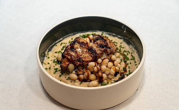 ALUBIA ARROCINA DE GARLAN EN CREMA Y LA PROPIA ALUBIA CON DELICIAS DE LA HUERTA Y FOIE