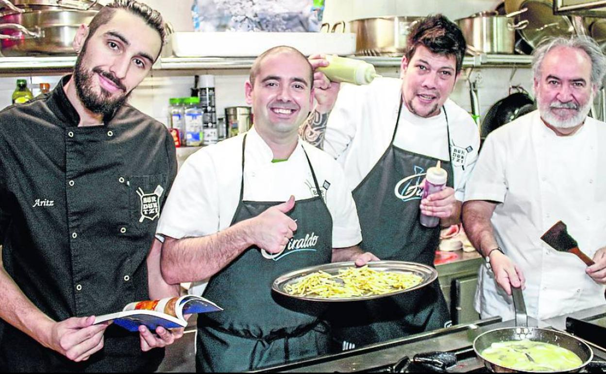 Como agua pasada no mueve molinos y tampoco sirve ya para guisar, la joven Burduntzi comparece por segundo año con ánimos renovados y el delantal impoluto aunque sea negro. «Vamos a intentarlo», avisan a navegantes. Otro abordaje. «El año pasado éramos nuevos y entramos con desparpajo. No queremos perder ese desparpajo», insiste Koldo Gojenola, pintor y cocinero, dos ocupaciones de vena artística.