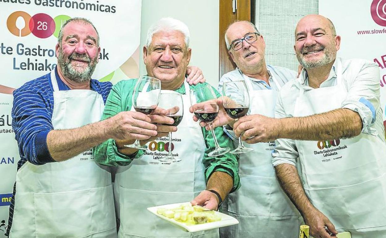 Roberto Ruiz de Mendarozketa y José Luis Delgado, 'Peri', los otros participantes en la alineación de la Herrería, supieron culminar la degustación con una elaboración de seis ingredientes: bacalao, patata, cebolla, pimiento verde, rojo y amarillo. Un resultado que se decoró con kokotxa y ajo negro, además de con algún germinado, para favorecer esa delicada presentación. «Todas las lascas se separaban muy bien y contaban con un punto de cocción muy bueno. Para mí, puede tener una puntuación muy alta», concretaba Gil. El secreto, confiesan estos cocinillas, es confinarlos por separado. 'Et voilà!'.