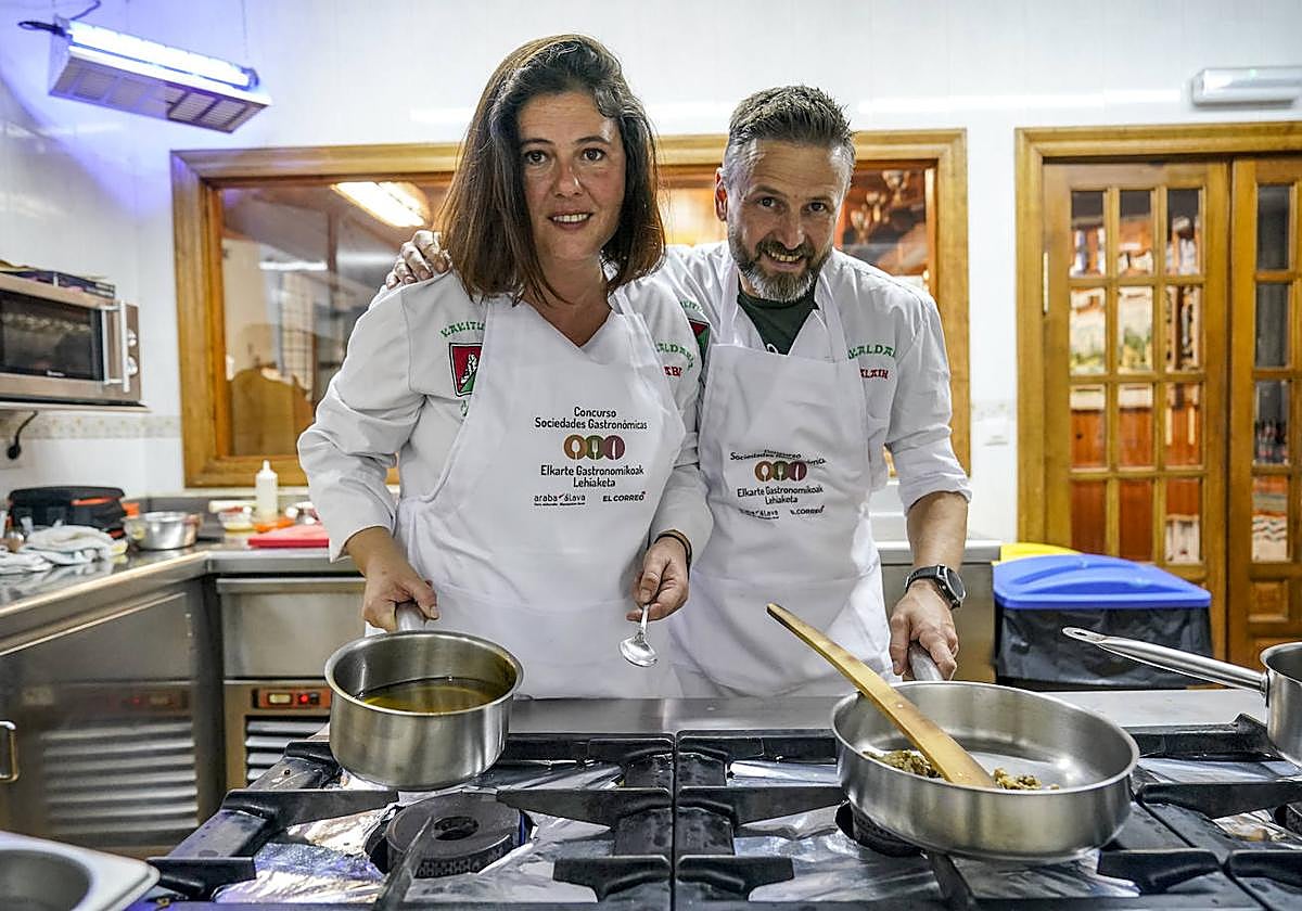 Se podría decir que es algo que lo llevan en el ADN. El dos veces txapeldun Fidel González decidió echarse a un lado y ceder el testigo a los jóvenes. Y Mabel Madariaga y Alain Medrano cogieron sus cuchillos para dejar claro que vienen con la lección más que aprendida. «Solo cocinamos si es juntos, nos entendemos a la perfección. Es como si fuesemos en una bici tandem», comentaban, metidos en faena. Un espectáculo culinario que atrapó la atención del resto de socios. Como si del Canal Cocina se tratase, se quedaron pegados a la enorme cristalera que enseña las entrañas de la cocina. Nadie se atrevió a realizar ninguna correción, más bien se les hacía la boca agua.