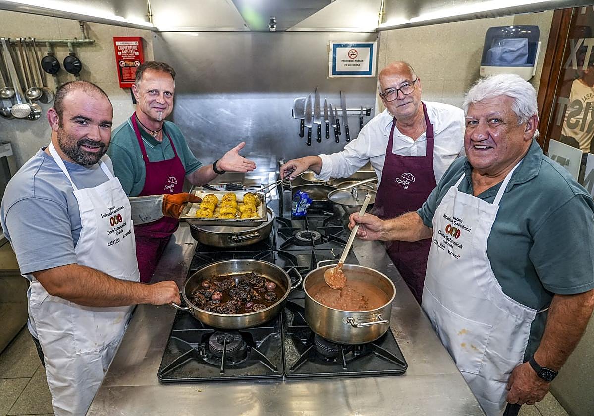Con la lumbre se fajaron Roberto Ruiz de Mendarózqueta, Mikel Zarrabeitia, Luis Etxaniz y Xabier Gil. De la alubiada se encargó Mendarózqueta, que tuvo cuidado de poner la pinta alavesa de 2024 a remojo más tiempo del debido -13-14 horas- con agua embotellada. Por un lado hizo las verduras y hortalizas con la costilla y el chorizo y por el otro, la legumbre, dos veces asustada con el mismo agua fría. Luego agrupó los condimentos. La presentación del clásico potaje respetó la costumbre: las alubias, en plato hondo y los sacramentos, exquisitos, al margen. «La alubia no se puede trabajar mejor», se convenció Roberto. Lo mismo vino a decir Javier Mata. «Me ha gustado mucho», afirmó el cocinero de Kakiturri.