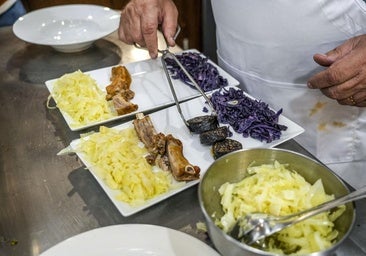 En Txipristin no solo se atiende a las tradiciones. También se acude a la huerta alavesa para llenar la cesta de la compra con la que después se prepararon los platos a concurso. Pequeños productores de Adana, Landa y Oquina suministran a sus diestros cocineros cebollas, puerros, tomates, pimientos, calabacines y verza de los denominados 'kilómetro 0'. Verduras que se rehogaron en las cazuelas con la legumbre y el ave de corral. Otras adornaron un colorido centro de mesa sobre el mantel que compartió el jurado.