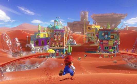 Paradojas del destino a un lado, la última aventura de Mario se presenta como su primer juego de «mundo abierto» en quince años, tras los excepcionales Super Mario 64 y Super Mario Sunshine. Sandbox en el sentido de que no aguarda una sucesión de niveles lineales, sino reinos que escudriñar hasta el último rincón. Lo comprobaréis al poco de iniciar partida, cuando abandonéis el sendero marcado para echar un vistazo aquí o allá. Cierto que los mundos de Odyssey no resultan especialmente extensos, pero heredan aquello que apuntó Aonuma respecto a Breath of the Wild: «si oteas un punto, por lejano que esté, puedes alcanzarlo». Así, os empeñaréis en subir a lo más alto del mapa para atisbar lunas esquivas, debiendo romperos la cabeza para conseguirlas.