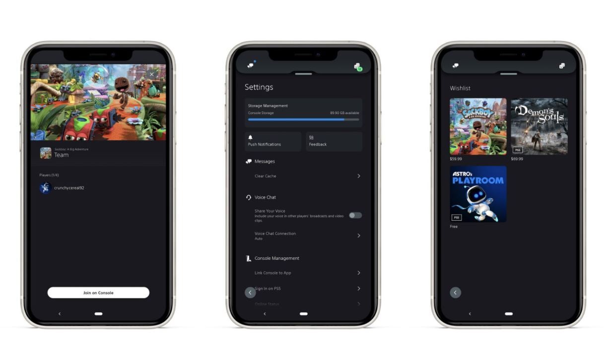 Entre éstas se incluyen una mayor facilidad de conexión remota a la consola; la posibilidad de guardar juegos en nuestra lista de deseos, recibir notificaciones de conexión, cambiar nuestro estado en línea, unirnos a sesiones multijugador, gestionar el almacenamiento de la máquina, comparar nuestra colección de trofeos con la de un amigo y filtrar productos en la PlayStation Store.