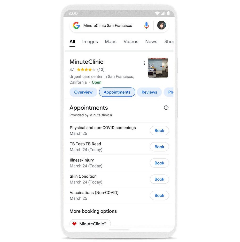 Así lo ha anunciado la doctora Karen DeSalvo, Chief Health Officer de Google: «Cuando la gente tiene preguntas sobre salud suele recurrir a internet. No importa lo que busquen, nuestra misión siempre será garantizarles el acceso a información veraz y de calidad, justo cuando la necesitan. [...] El equipo de búsquedas de Google, encabezado por Hema Budaraju, acaba de presentar una funcionalidad para pedir cita con los principales proveedores de salud. Ya necesites un chequeo rutinario o te acabes de mudar y busques un nuevo doctor, podrás consultar todas las citas disponibles con los médicos de tu zona».