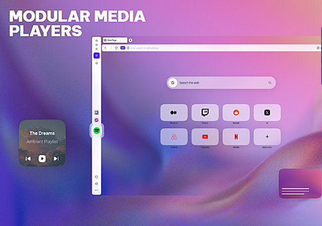Mucha gente no sabe vivir sin escuchar su playlist preferida. De esta forma, podremos acceder a nuestro proveedor de música directamente desde Opera, una nueva función compatible con Spotify, YouTube Music y Amazon Music, entre otras. Cuando acabemos de configurar este apartado, se desplegará un módulo flotante que nos permitirá, entre otras funciones, cambiar de canción o detenerla. También se puede insertar en alguna de las barras de navegación. De nuevo, todo son facilidades por parte de los desarrolladores noruegos.