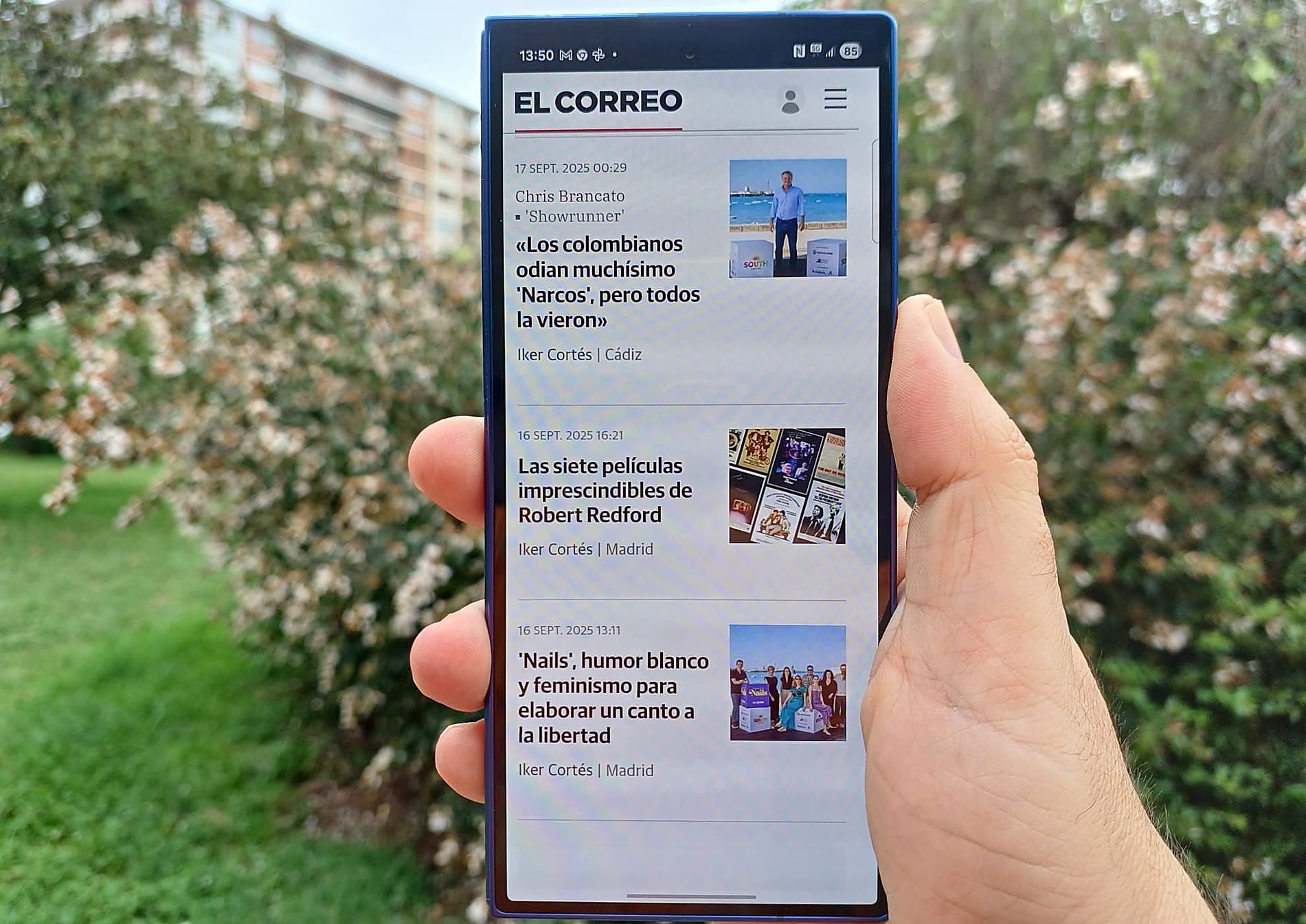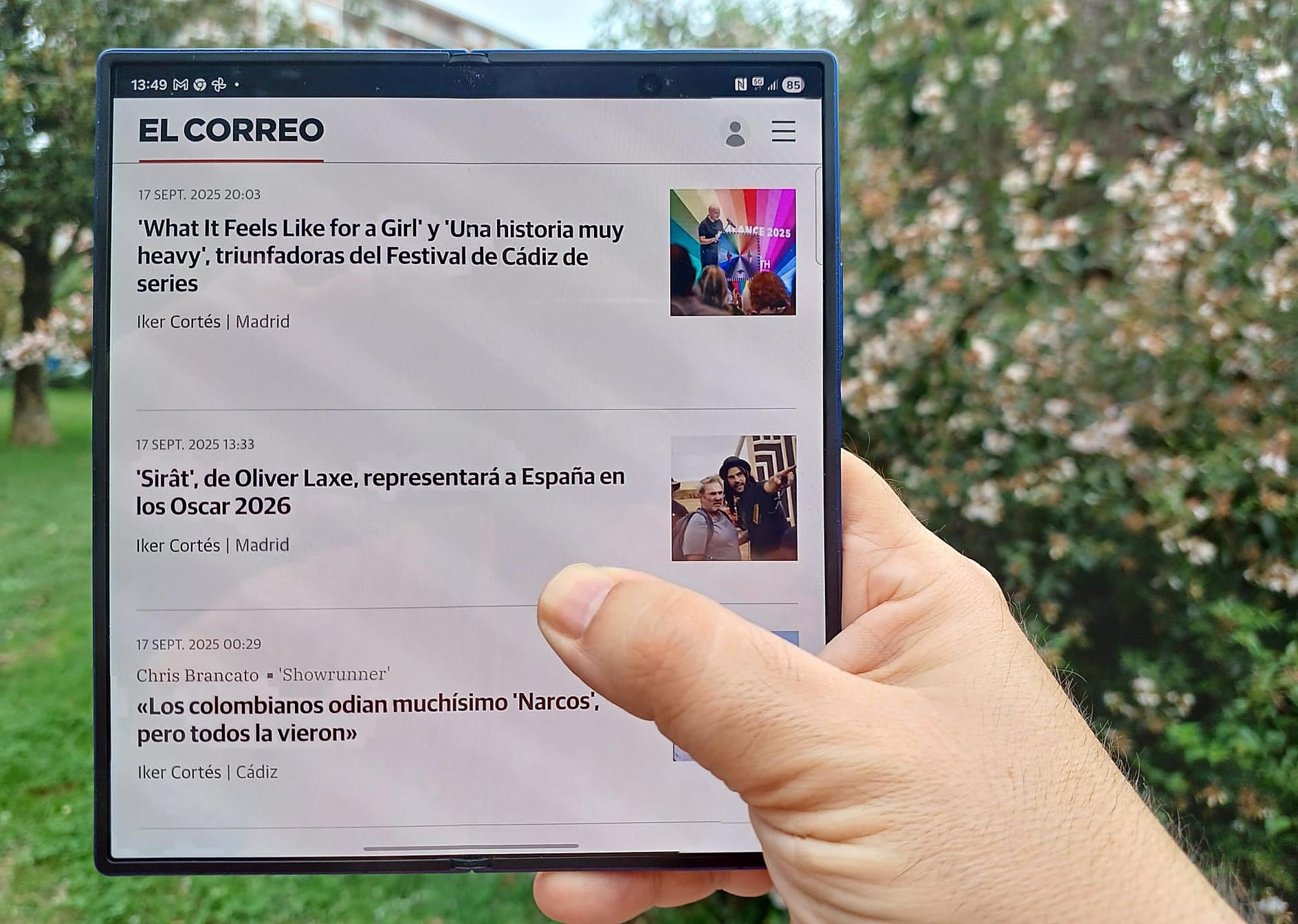 Igual sucede con la pantalla interior, que aumenta hasta las ocho pulgadas, y que atesora la misma cantidad de nits. Incluso comparte con la externa la misma tecnología AMOLED 2X, eso sí con resolución (2184 x 1968) a 368ppi. También presenta alguna que otra diferencia. Como su pliegue, que sigue notándose tanto a la vista como al tacto pese a que su presencia se ha reducido respecto a modelos anteriores. Lo que es una pena es que, al igual que la exterior, no cuente con la capa antirreflejos del Galaxy S25 Ultra. Una vez que te acostumbras a ella no hay vuelta atrás, por lo que debería ser obligatoria en los teléfonos de alta gama de la marca.