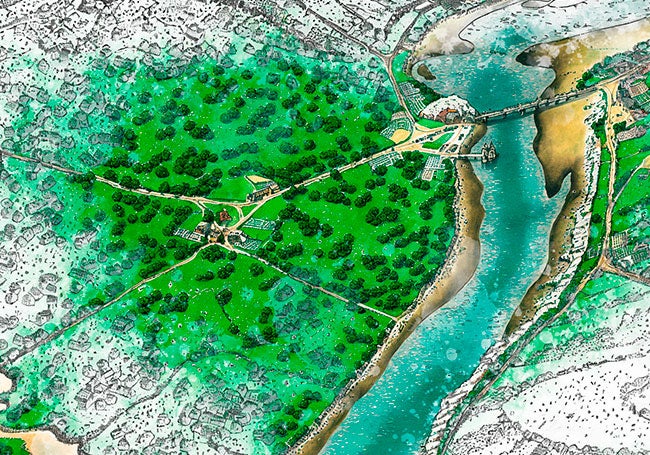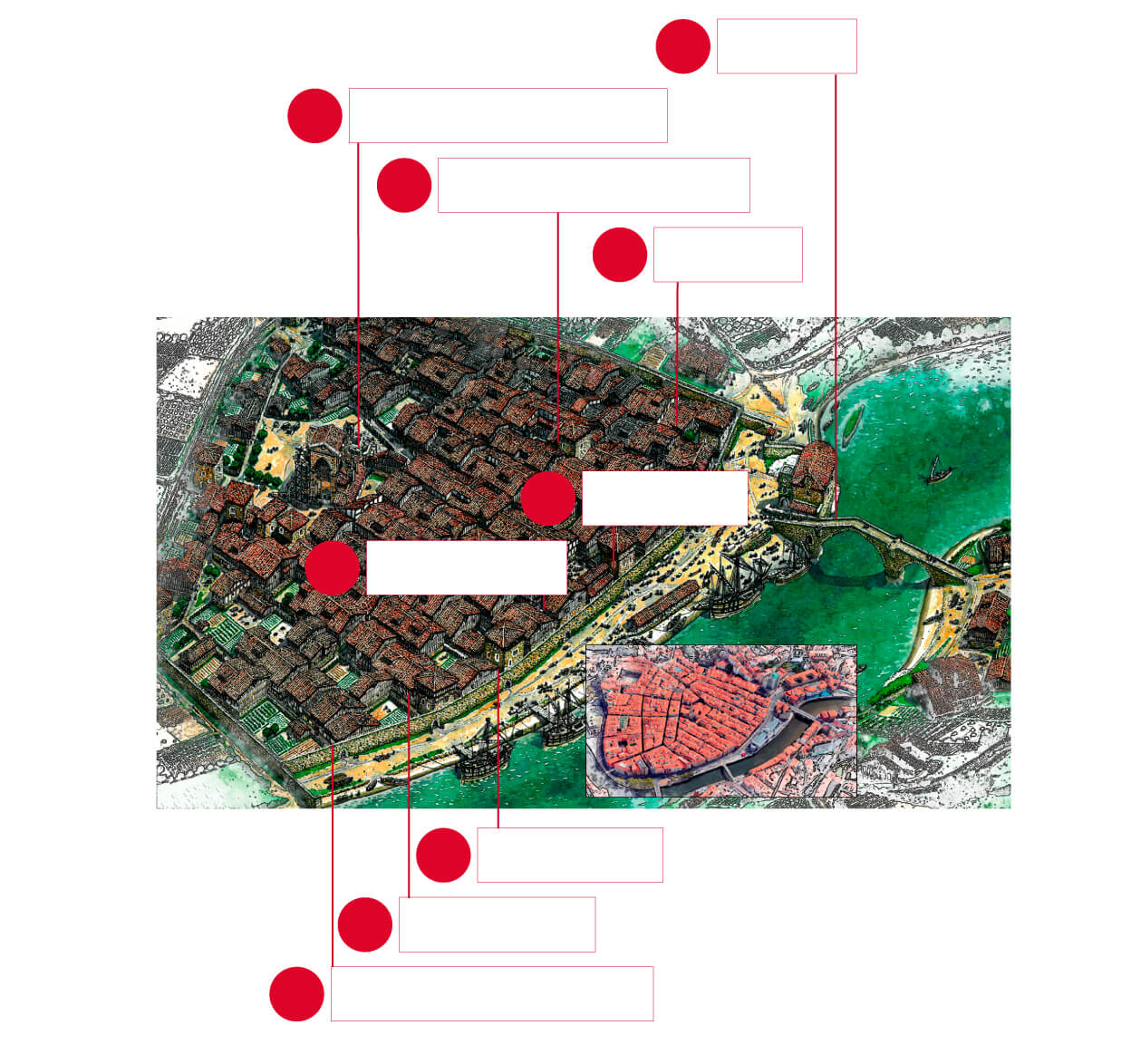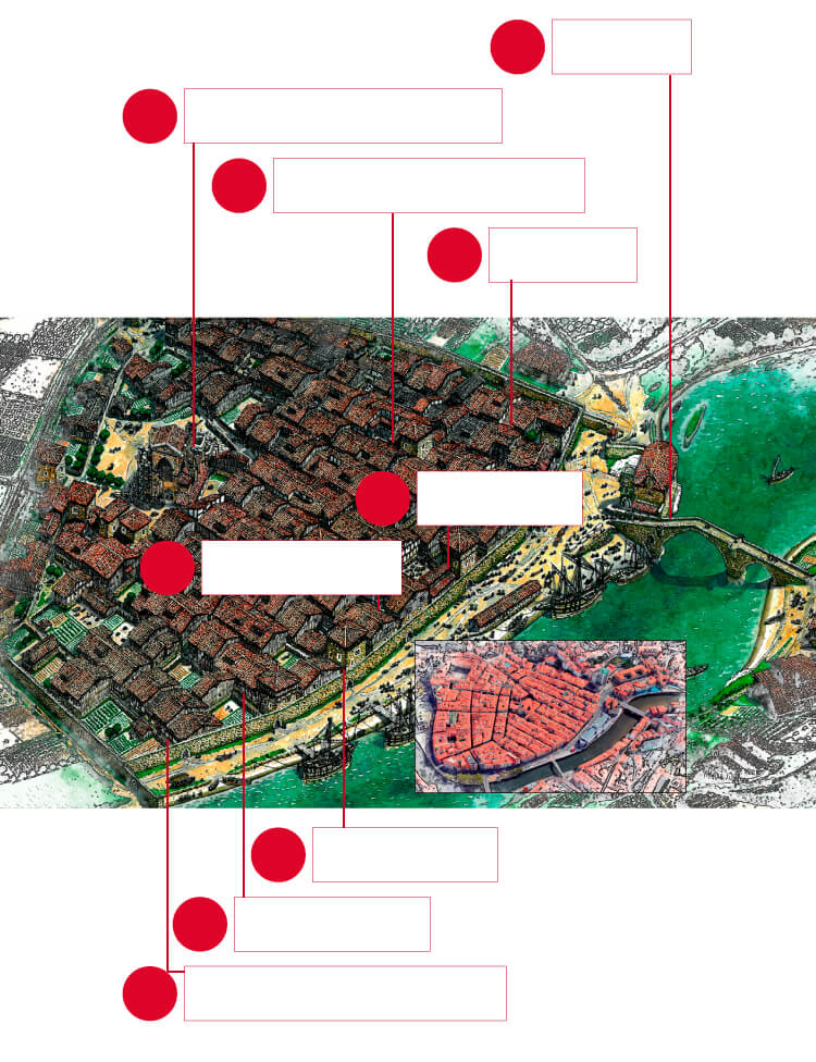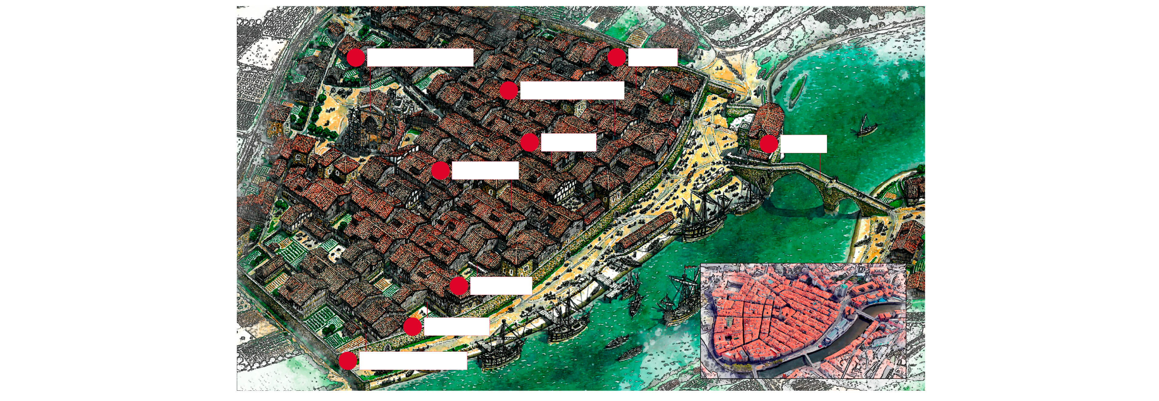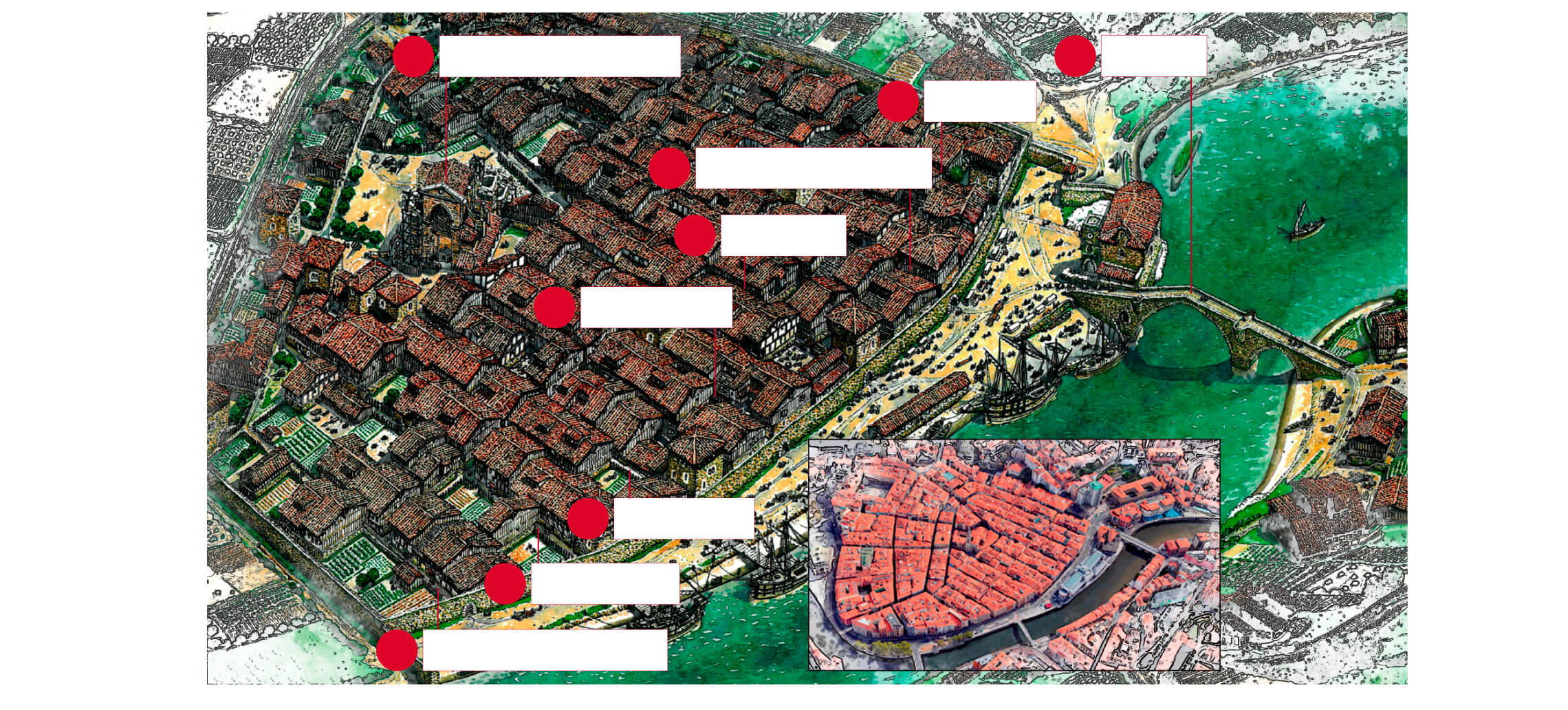 Historiadores José Luis Casado Soto y Alberto Santana Ezquerra. Dibujos de Fernando Hierro. 'Estudio histórico, documentación, planimetría e iconografía de Bilbao'. Publicado por El Correo.