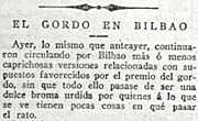 Los bilbaínos de principios del siglo XX estaban un poco desengañados de la lotería de Navidad. El gordo solo había caído en la villa una vez, en 1814, así que llevaban muchas décadas ya de espera y decepciones. El 22 de diciembre de 1908, cuando se supo que el primer premio había correspondido íntegramente a la capital vizcaína, la población se volvió medio loca, presa de un alborotado frenesí. Eran unos tiempos menos discretos y pudorosos que los nuestros, así que todo el mundo daba por hecho que se acabarían descubriendo los nombres de los agraciados. Y, en su mayoría, sí que se supo su identidad, pero de alguna manera ese conocimiento condujo de nuevo al desengaño, ya que la mayor parte de los seis millones se limitaron a pasar por aquí y marcharon hacia México.