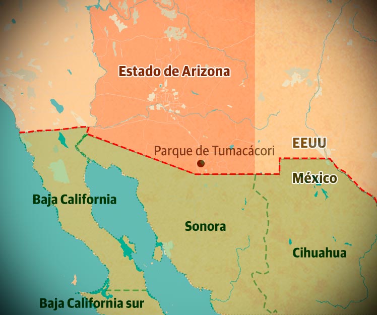 La actual Arizona formaba parte en el siglo XVII de las provincias españolas de Sonora y Sinaloa, una zona que también era conocida como Nueva Navarra en homenaje al misionero jesuita navarro San Francisco Javier. Era un territorio que se había explorado en busca de riquezas, en especial, de las bautizadas como Siete Ciudades de Cíbola, unas imaginarias poblaciones que según el mito deberían estar repletas de tesoros.