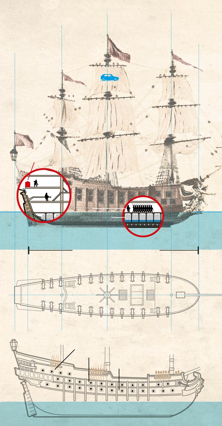 Al día siguiente la imagen era infernal. Tan solo era visible el esqueleto del barco, la roda y el codaste junto a la cubierta inferior. De los 27 cañones que disponía, solo se pudo recuperar uno. Por ambas márgenes de la ría se veían restos del navío y de su carga, pero sobre todo de sus tripulantes. Decenas de cadáveres cubrían los arenales y las rocas.