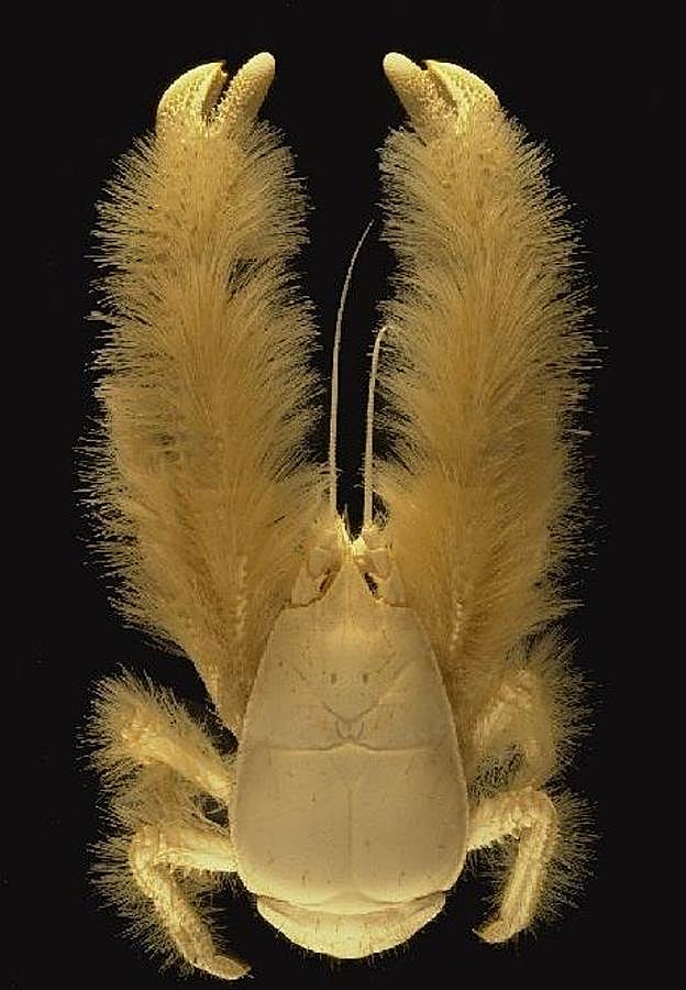 Le llamaron 'Yeti' porque tiene dos enormes 'brazos' frontales con apariencia peluda (en realidad son cerdas, como las de las polillas). El resto de su anatomía es la de un crustáceo, pero parece un híbrido entre un mono y un cangrejo normal. Se descubrió en 2005, a unos 1.500 kilómetros de la Isla de Pascua y en las profundidades del océano.