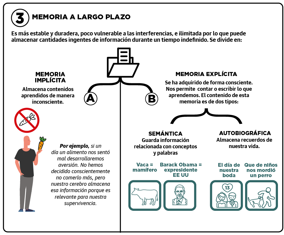 «Probablemente se acuerde del número del fijo que había en casa. Pero, ¿cuántos móviles puede recordar hoy? No es solo que nos hayamos hecho cómodos, es que la cantidad de elementos que podemos retener en la memoria de corto plazo son siete (con una variación de dos arriba o abajo). Por eso, antes te recitaban el teléfono fijo de alguien, número por número, y no resultaba difícil aprenderlo, porque eran siete números, sin contar el prefijo. Los móviles, sin embargo, tienen nueve y memorizar las nueve cifras es complejo, de ahí que se agrupen en bloques: 648 890 647. Dicho así, para el cerebro ya no son nueve números, sino tres elementos. De igual modo, no seremos capaces de recordar las treinta cosas que tenemos que comprar en el supermercado, pero si agrupamos esos productos en cuatro o cinco categorías: frutas, conservas, pescado y productos de limpieza, por ejemplo, será más sencillo. De todos modos, aunque lo memoricemos probablemente en unos segundos se nos olvidará. Y esto no es malo, todo lo contrario, ya que no sería eficiente que memorizásemos todo lo que nos ocurre. Si hay algo que queremos retener, un número de móvil por ejemplo, para que pase de esa memoria a corto plazo y evanescente a la de largo plazo habrá que recitarlo en voz alta, repetirlo o hacer asociaciones significativas. Por ejemplo, si tras esta entrevista haces la asociación 'Félix, el neurólogo', será más fácil que recuerdes mi nombre en el futuro que si solo dices 'Félix'. Al concederle una categoría, en este caso la profesión, cuando necesites recordar mi nombre rescatarás esa información del 'cajón' de neurólogos que conoces, que probablemente serán muy pocos, en lugar de sacarla del cajón de los nombres, donde habrá muchos», explica el ejemplo Félix Viñuela.