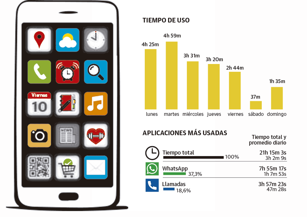 La semana anterior al 'experimento', solo por curiosidad, me 'monitorizo' para hacerme a una idea de cuánto tiempo semanal uso el móvil. Esto se hace instalando unas apps que te dicen exactamente cuántas horas has estado pendiente del aparatito, qué servicios has usado más y cuántas veces desbloqueas el móvil. Os las recomiendo. Me sonrío para mis adentros. Yo no soy una de esas personas que están todo el día pegadas al móvil, para nada. Yo controlo. Tengo una vida y no malgasto mi tiempo a lo tonto; además, últimamente lo uso bastante menos que antes. Todo esto me lo repito mientras abro la aplicación para ver el examen de mi actividad 'movilística' de la última semana, convencida de que será algo moderado... ¡21 horas, 15 minutos y 34 segundos en una semana! ¿Estamos locos? Se me cae el alma a los pies. Eso es casi un día entero de mi semana. Y lo que es peor, de la semana de la gente que me quiere y que, seguramente, me ha visto en los últimos días (con desesperación) wasapeando frenéticamente, mirando qué tiempo va a hacer, leyendo noticias, contestando emails... Para justificarme, me digo que será por el trabajo: el móvil es una herramienta fundamental para un periodista. Pero una segunda mirada a los datos me hace ver que, bueno, una buena proporción del tiempo se me ha ido en pájaros y flores, en redes sociales, en picotear noticias de aquí y de allá, en mirar qué crema lleva más retinol o qué cascos inalámbricos me quiero comprar... Cosas que no son como para salvar al mundo o ganarme un Pulitzer.
