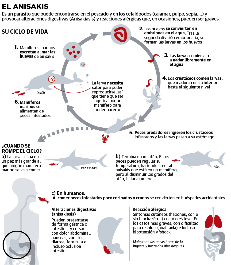 La mayor presencia del parásito en los peces y la tendencia de comerlo crudo ha hecho aumentar las alergias