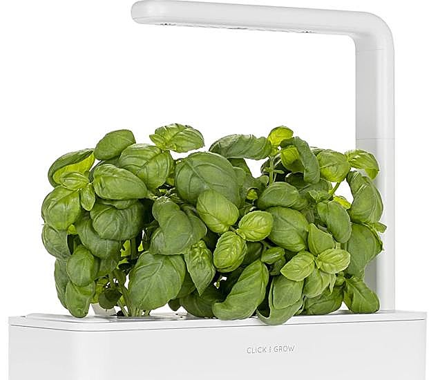 No todo el mundo tiene 'mano verde', pero la jardinera inteligente de Click & Grow puede ser la solución para aquellos a los que se les mueren todas las plantas. Utiliza una lámpara led de bajo consumo y eficiente e incluye cápsulas de albahaca con todo lo necesario para que las plantas vivan un año (luego se pueden comprar más cápsulas con otras especies vegetales). El sensor que incorpora la jardinera garantiza que la planta tenga el agua, el oxígeno y los nutrientes que necesita para germinar y crecer. No emplea pesticidas ni hormonas vegetales.