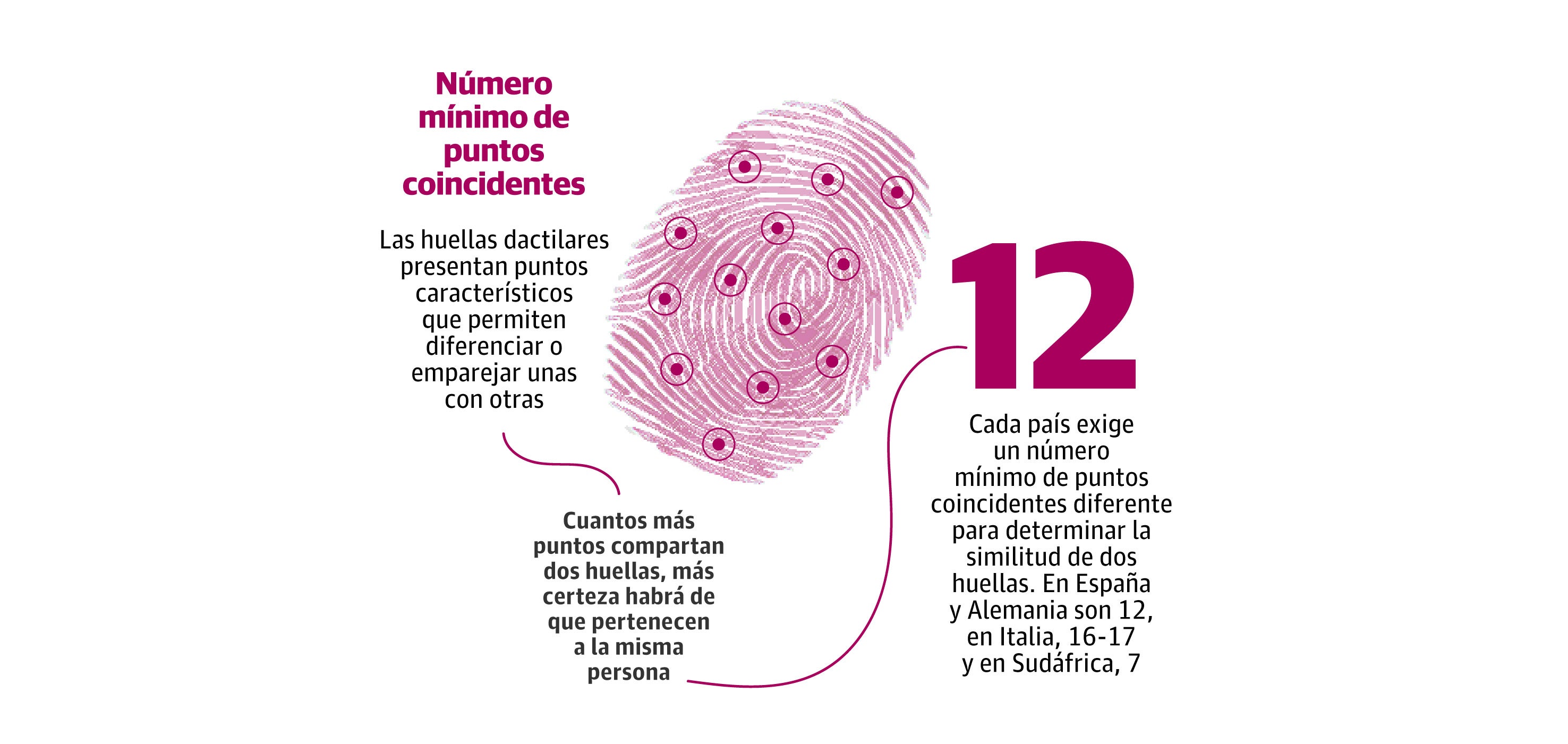 El iris, la voz o las crestas de fricción palmares y plantares, son algunas de ellas. «Estas últimas son ideales para la identificación porque son perennes –desde que se forman en el sexto mes de vida permanecen invariables–, inmutables –se regeneran tal cual eran incluso tras una herida, excepto si se trata de quemaduras–, y diversiformes –hasta hoy no se han encontrado dos impresiones idénticas producidas por dedos diferentes, ni siquiera entre hermanos gemelos–», explica Javier Martín, director del Laboratorio Pericial Forense. Además, es un sistema económico, fácil de usar y con una fiabilidad bastante buena, aunque no infalible.