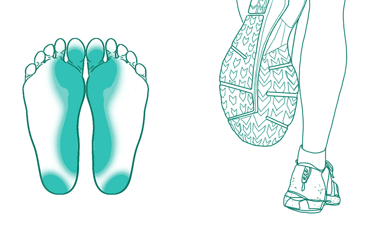 Dependiendo de la pisada, el apoyo del pie pasa desde el talón o el medio pie hasta la zona de los dedos.