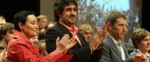 La firma del acuerdo entre Batasuna y EA, el 20 de junio, situó en la primera fila del Euskalduna a Jone Goirizelaia, Pello Urizar, Rufi Etxeberria e Ikerne Badiola. :: L. ÁNGEL GÓMEZ