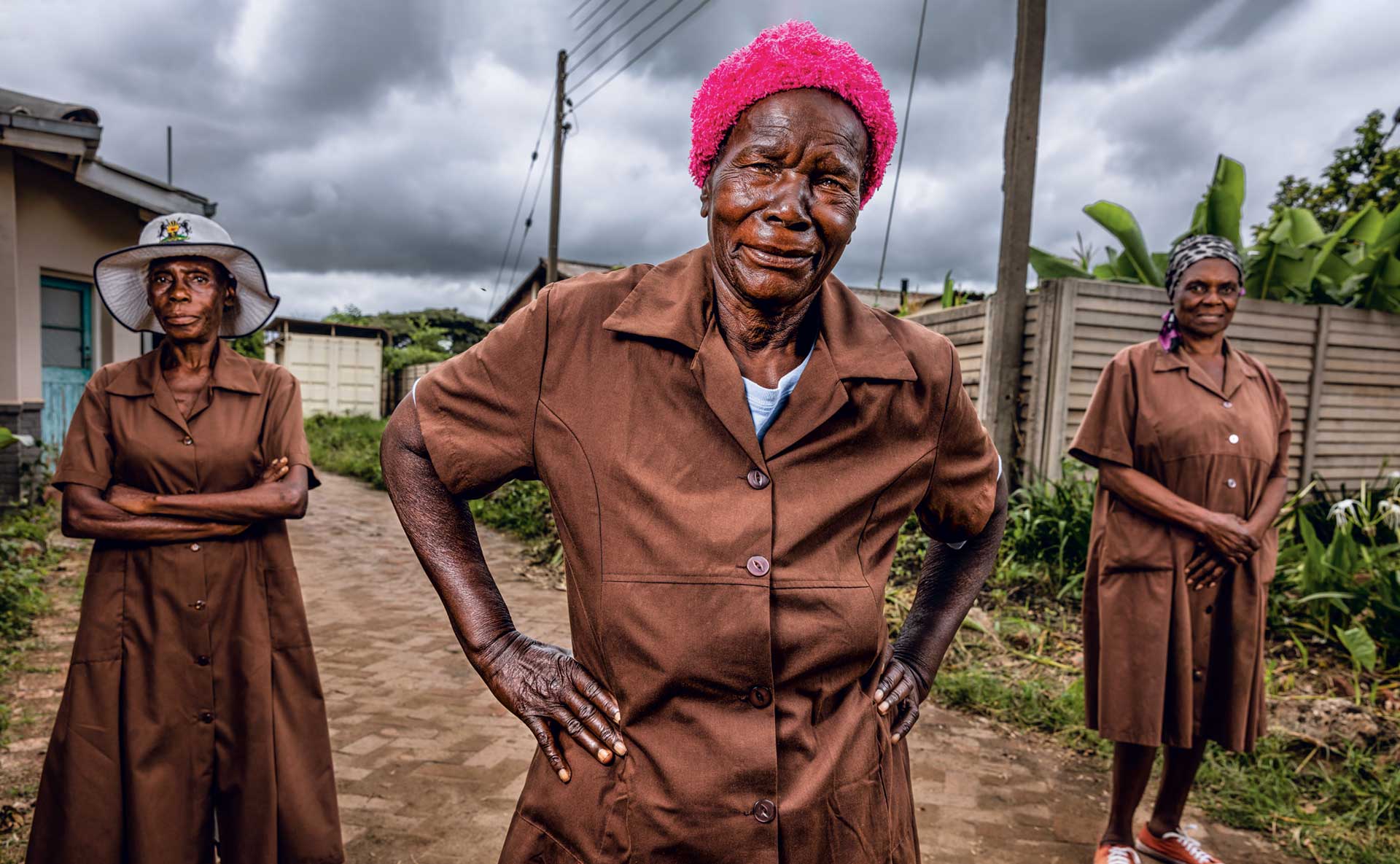 Shelter Nhengo, de 72 años (en el centro de la imagen superior), fue una de las primeras voluntarias. Es una de las 'abuelas', una gogo, como las llaman allí. Estas mujeres son casi la única respuesta a las heridas que la violencia y la pobreza han abierto en Zimbabue. Cuando fueron reclutadas en 1997, eran auxiliares sanitarias, y siguen conservando el viejo uniforme. Al psiquiatra Dixon Chibanda se le ocurrió reconvertir a estas profesionales mal pagadas en terapeutas. Fue la primera promoción de 'abuelas'. Desde entonces han pasado 15 años.