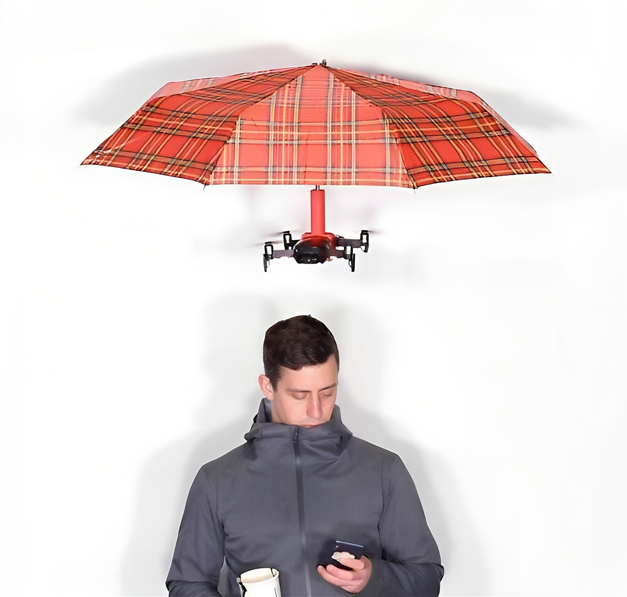Dificultad de fabricación, estereotipos, falta de recursos… Y luego están las 'ideotas'. Como el 'paraguas manos libres'. De esta modalidad se han intentado llevar a cabo varios prototipos, pero ninguno ha sido precisamente un éxito. En 2017, a Raynel Lazo-Antunez y a su esposa se les concedió la patente de su 'paraguas manos libres automatizado': la cubierta llena de helio del DroidBrella flota con la ayuda de una hélice. Luego tenemos el Hoverbrella, un concepto que combina la forma tradicional del paraguas con la tecnología actual de drones para producir una solución de manos libres para mantenerse seco mientras puedes seguir mandando WhatsApp por el móvil. Y lo último, pero no menos sorprendente: el DroneBrella, el auténtico paraguas volador. El dron vuela de forma autónoma y sigue a su dueño, con ayuda de la cámara. DroneBrella no es un proyecto de una start-up o de una compañía tecnológica, sino que es obra de una empresa de magia francesa que se dedica a fusionar la magia con la tecnología. Al menos este prototipo no es de los que te dejas olvidado cada vez que entras en el metro.