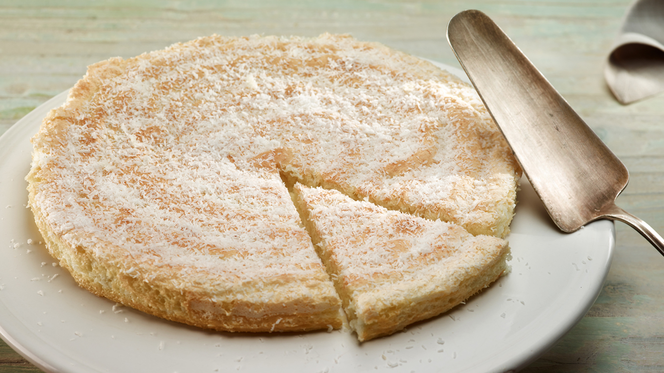 Acabado: vertemos la mezcla en el interior del molde y lo golpeamos contra la mesa delicadamente para que la masa se asiente por igual. Entonces lo horneamos durante 15 minutos. Transcurrido el tiempo lo sacamos para que se enfríe. Desmoldamos y espolvoreamos con el coco rallado y una pizca de azúcar en polvo.
