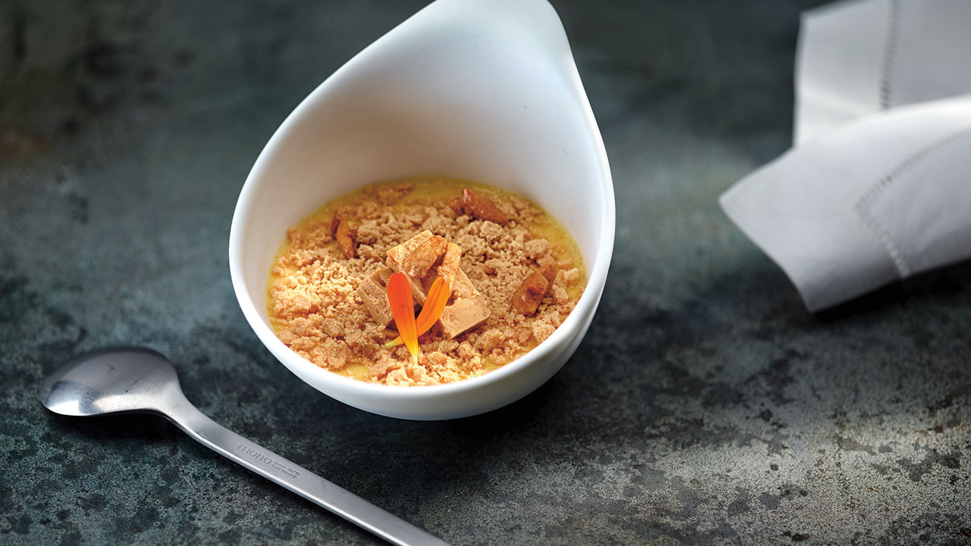 Una deliciosa receta de cuajada de turrón de la mano de Martín Berasategui. Foto: José Luis López de Zubiría / Ilustraciones: Javirroyo