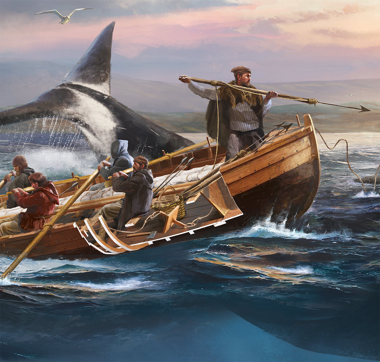 Cuando los cetáceos empezaron a escasear en la costa vasca, los pescadores de Labort (sur de Francia), de Guipúzcoa y Vizcaya se acercaron a faenar a Asturias y Galicia. Después cruzaron el Atlántico tras ellas y tras el bacalao, muy abundantes en Canadá. Su manera de pescar los convirtió en los reyes del arponeo. Tanta fue su destreza que en el siglo XVI rozaron el monopolio mundial en el suministro de aceite de ballena, una especie de petróleo de la época; muy demandada también para hacer jabones e incluso medicinas.