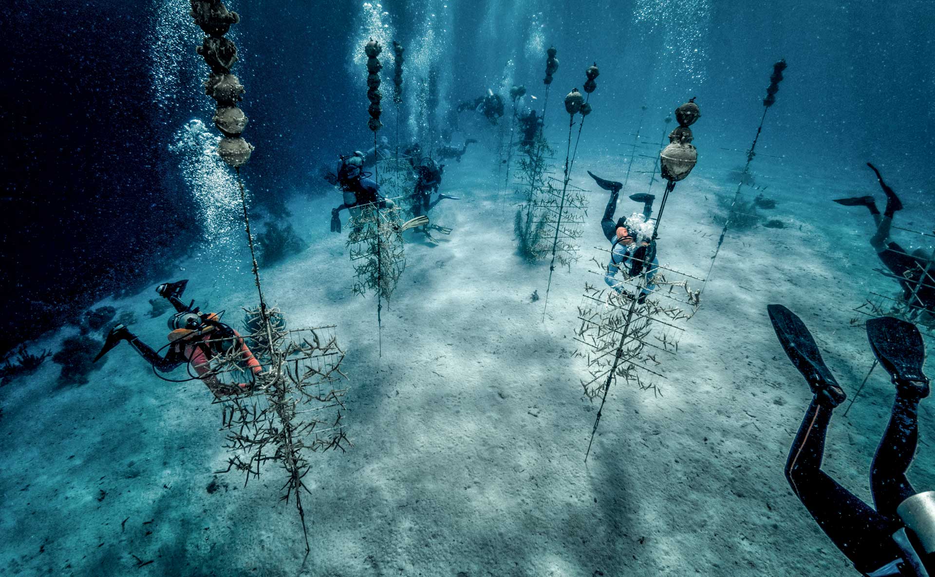 Apenas hemos explorado el 5 por ciento de los océanos, pero ya hemos acabado con el 90 por ciento de sus especies. Los arrecifes del Caribe, uno de los hábitats más ricos del planeta, están en peligro. Los biólogos intentan salvarlos cultivando coral en granjas submarinas.