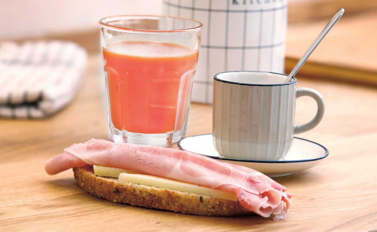 «Tomo un sándwich mixto de jamón y queso, a la plancha, con un zumo de naranja y un café con leche».