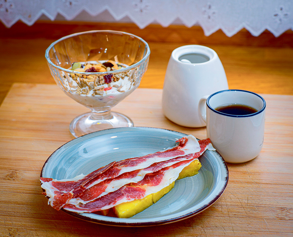 «Tomo un café con una cucharada de leche en polvo. Un plátano, melón con jamón ibérico y un yogur en un bol al que le pongo cereales, semillas y pasas».