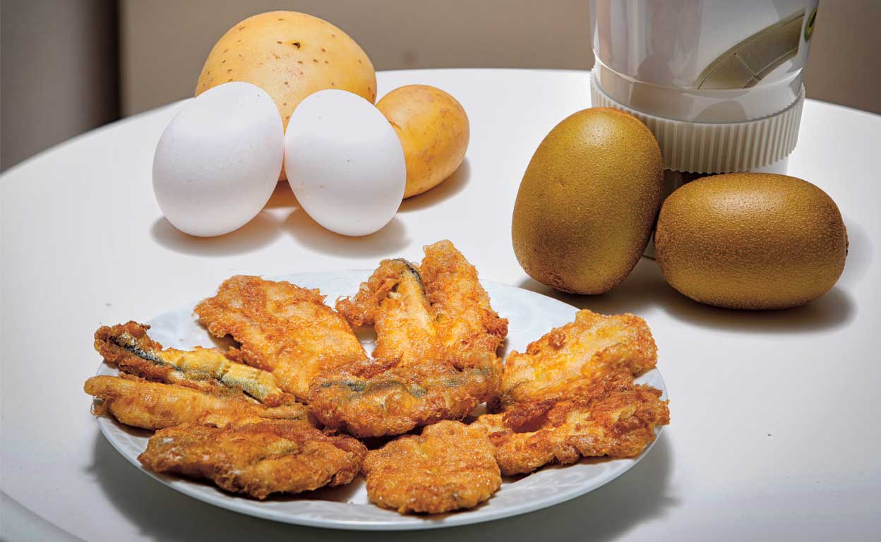 «Siempre desayuno las sobras de la cena. Hoy, un pescadito frito, un cachito de tortilla, un kiwi y un café americano».