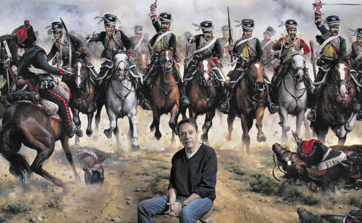 En aquella primera e inolvidable conversación intercambiamos nombres de pintores de Historia como si fuéramos dos niños que intercambiasen cromos: Velázquez, Goya, Cusachs, Detaille, Meissonier, Géricault, Neuville… Pintores de escenas bélicas o históricas que iluminaban iconográficamente nuestra memoria. Para mí fue muy interesante compartir aquella amistad naciente con un pintor contemporáneo que no sólo los admiraba como yo, sino que los estudiaba a fondo como inspiración para su trabajo. Por eso, pocos días después, comiendo cuscús y cordero en el restaurante Al-Mounia de Madrid, le propuse que pintase la batalla de Rocroi, pues allí murió el Capitán Alatriste. Y ese cuadro unió nuestras vidas para siempre.