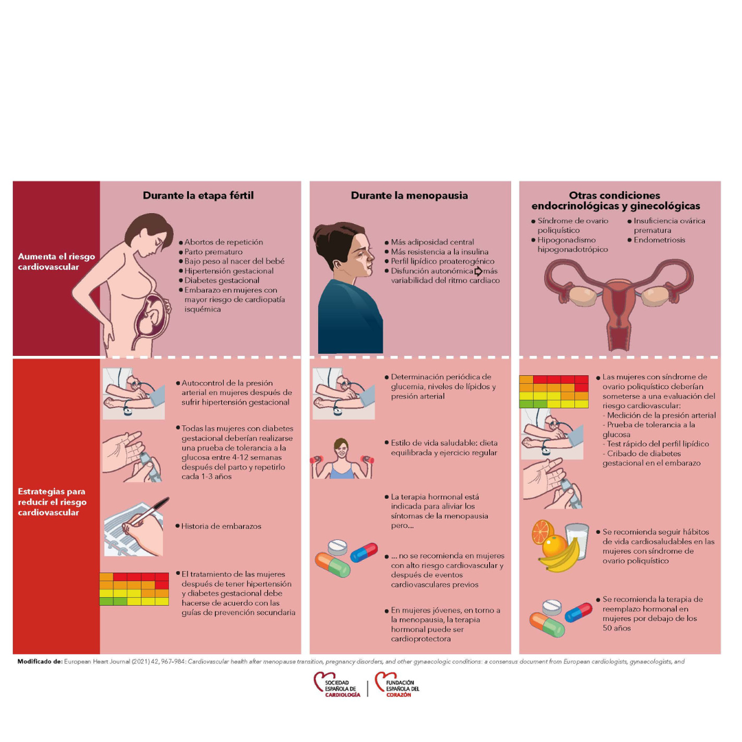“La insuficiencia ovárica prematura, sufrir abortos de repetición, o padecer hipertensión y diabetes gestacional”, son condiciones que aumentan el riesgo cardiovascular en la mujer”