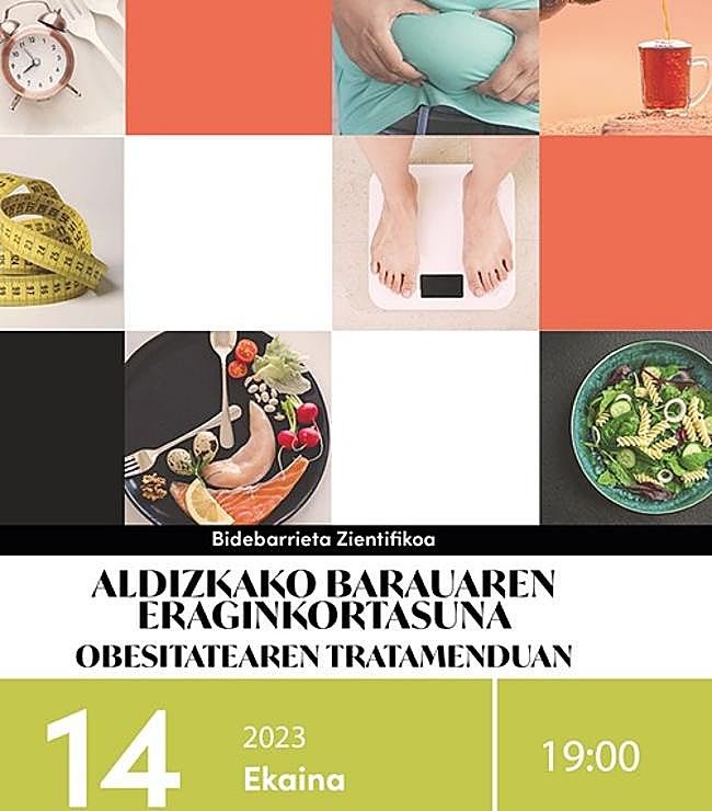 'Aldizkako Barauaren Eraginkortasuna Obesitatearen Tratamenduan' izeneko hitzaldia eskainiko dute asteazken honetan, ekainaren 14an, Bilboko Bidebarrieta Kulturgunean. Hauxe Nafarroako Unibertsitate Publikoko Osasun Zientzietako Saileko irakasle eta ELIKOS ikerketa taldeko burua den Idoia Labayen Goñik emango du. Arratsaldeko zazpietan Areto Nagusian abiatuko den ekimena euskara hutsean izango da, bertaratzea librea eta doakoa izango delarik.